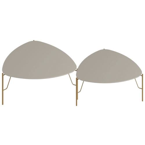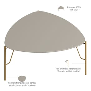 Combinando o formato triangular com cantos arredondados e pés metálicos industriais, esse duo oferece versatilidade e estilo para sua sala de estar. A mesa de centro alta funciona como apoio prático para drinks e objetos decorativos, enquanto a mesa de centro baixa cria um visual equilibrado e moderno. Juntas, formam uma composição dinâmica que se adapta a qualquer layout - do minimalista ao eclético.
