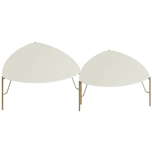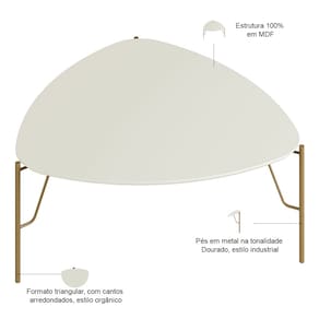 Combinando o formato triangular com cantos arredondados e pés metálicos industriais, esse duo oferece versatilidade e estilo para sua sala de estar. A mesa de centro alta funciona como apoio prático para drinks e objetos decorativos, enquanto a mesa de centro baixa cria um visual equilibrado e moderno. Juntas, formam uma composição dinâmica que se adapta a qualquer layout - do minimalista ao eclético.
