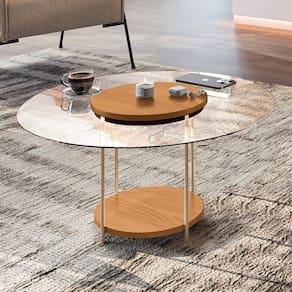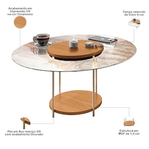 Com essa mesa de centro redonda, o design orgânico encontra a contemporaneidade ao combinar a delicadeza do tampo em vidro de 6mm com a robustez da madeira, criando uma composição leve e marcante, permitindo que a luz dance sobre sua superfície. Já os pés em aço maciço com acabamento dourado, inspirados no design industrial, trazem um toque de elegância ao ambiente. A Mesa Allure não é apenas um complemento decorativo, mas sim um elemento que transforma sua sala de estar em um espaço acolhedor e estiloso.