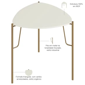 MDF | MetalCompletando a premiada linha Alef, da Lyam Decor, esse conjunto de Mesas Laterais Alta e Baixa traz o mesmo DNA de design que marcou a coleção: formato triangular inovador, cantos arredondados e pés metálicos que equilibram estilo industrial com toque orgânico.