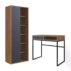 Kit 02 Peças Para Escritorio CF008, possui destaques versáteis, que proporciona um estilo ideal para deixar o ambiente ainda mais moderno. Estrutura em MDP de 15mm, que proporciona melhor acabamento nas bordas e superfícies, contando com pintura Finish Foil (Fosco) que também é conhecido como FF atendendo a todos os requisitos de qualidade e durabilidade. O conjunto é composto por um livreiro com 01 porta de correr, 05 prateleiras, possui pés com sapatas plásticas e estrutura que suporta até 20kg, e uma mesa composta por tampo em MDP 15mm seguindo as tendências de decoração mais atuais, base totalmente reforçada em metal de 15mm, 01 gaveta com corrediças metálicas, puxador plástico e 01 nicho para auxiliar na sua organização. É a escolha certa para você que quer complementar seu mobiliário, tornando o ambiente em que estiver muito mais moderno. Fácil de montar e com acabamento office que deixa o móvel ainda mais elegante. Estes móveis chegarão em sua casa separados em 02 volumes.