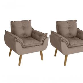 Kit 02 Poltrona/Cadeira Decorativa E Puff Glamour Com Pés Quadrado Capuccino - Kit poltrona com Puff