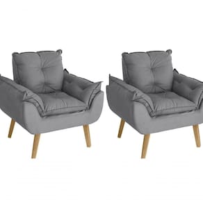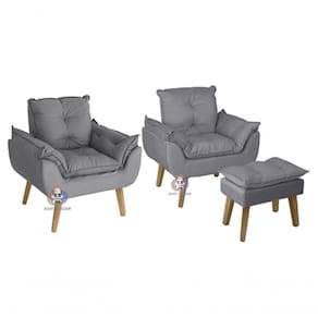 Kit 02 Poltrona/Cadeira Decorativa E Puff Glamour Com Pés Quadrado Cinza - Poltrona Com Puff