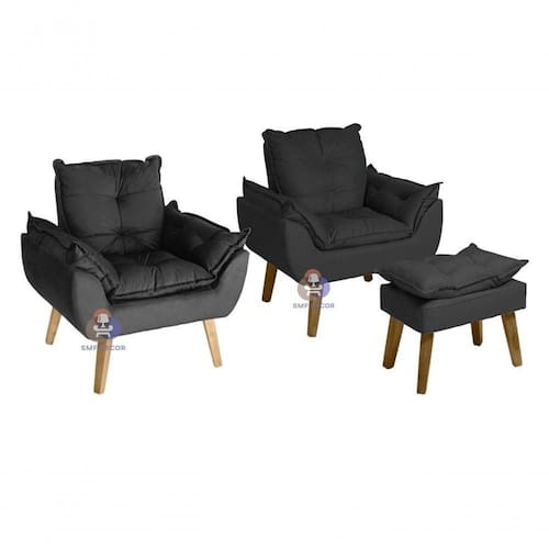 - Conteúdo da Embalagem: 02 Poltrona e 01 Puff 03 Kit Pés