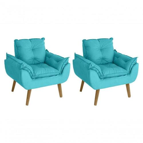 Kit 02 Poltrona Cadeira Decorativa Glamour Com Pés Quadrado Azul Turquesa - Kit poltrona