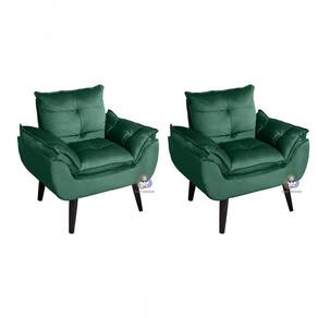Kit 02 Poltrona/Cadeira Decorativa Glamour Com Pés Quadrado Verde Veludo - Kit poltrona
