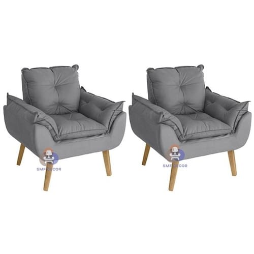 Kit 02 Poltrona/Cadeira Decorativa Glamour Opala Com Pés Quadrado - Cinza