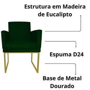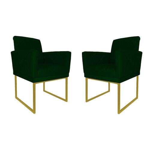 Kit 02 Poltrona Decorativa Recepção Klara Base Dourada Suede Cor:verde