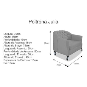 Gostaria de um móvel que trouxesse mais elegância e sofisticação para o seu lar? O Kit 02 Poltronas Julia A02 é sua melhor opção! Com característica moderna e com acabamento de qualidade, este produto atenderá suas expectativas! Não perca essa oportunidade e adquira já a sua!Especificações Técnicas do Kit 02 Poltronas Julia A02 : - Altura: 80 cm;- Largura Total: 69 cm;- Profundidade: 70 cm;- Peso: 20 Kg;- Peso Suportado: 120 Kg;Diferenciais do Kit 02 Poltronas Julia A02 : - Material da Estrutura: fabricado com Madeira Pinus e Eucalipto Reflorestada, e alguns detalhes em MDF;- Tipo de Assento: Estofado e com espuma de densidade D-26;- Tipo de Encosto: Estofado e com espuma de densidade D-18;- Detalhes do Pé: acompanham pés de madeira de alta resistência;Recomendações de limpeza: -Limpar com flanela limpa e seca. Não molhar o móvel e não expor em lugar úmido ou próximo de fontes de calor. Não usar produtos abrasivos.Observações Importantes: - As imagens ambientadas são meramente ilustrativas e podem apresentar itens que não compõe o produto;- Objetos decorativos que aparecem na foto não acompanham o produto;- As cores do produto podem variar de acordo com o monitor, a iluminação do ambiente, ou sua percepção visual;- O Kit 02 Poltronas Julia A02 chegará montado para você, bastando encaixar os pés;- Confira as dimensões antes da compra e certifique-se de que o produto passará por elevadores, portas e corredores;- Ao receber seus produtos, verifique no ato do recebimento qualquer dano na embalagem;- Produto para uso residencial em ambiente interno, não devendo ficar exposto diretamente ao sol, calor e umidades excessivas.