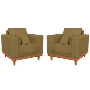 Você receberá 2 volumes, ou seja, um Kit 02 Poltrona Living Suede Base Madeira Sala Recepção