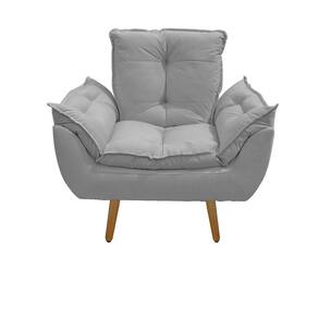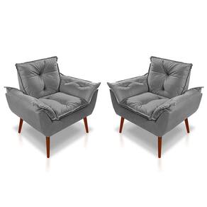 Kit 02 Poltrona Opala Decorativa Suede Cinza Claro