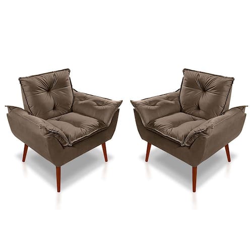 Kit 02 Poltrona Opala Decorativa Suede marrom