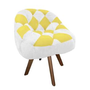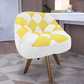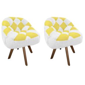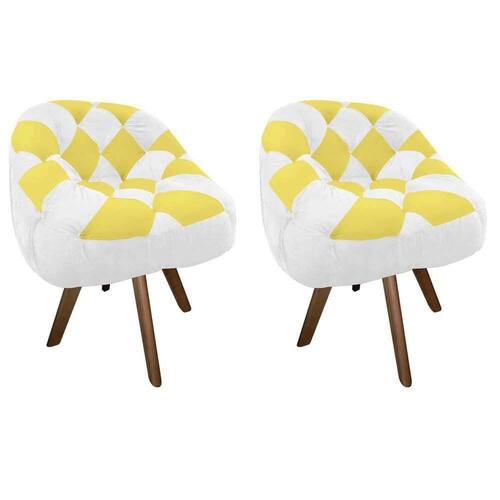 Kit 02 Poltrona Paloma Escritório Sala Giratória Madeira Corino Branco E Corino Amarelo - Malessa Decor