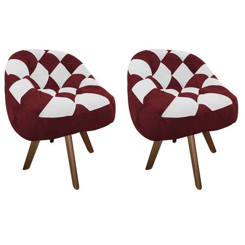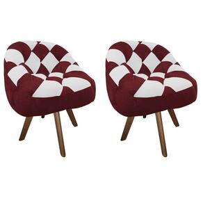 Kit 02 Poltrona Paloma Giratória Madeira Corino Vinho E Corino Branco