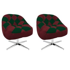Kit 02 Poltrona Paloma Escritório Sala Giratória Metal Corino Vinho E Corino Verde - Malessa Decor