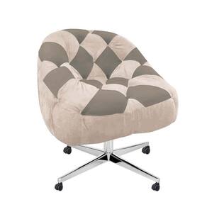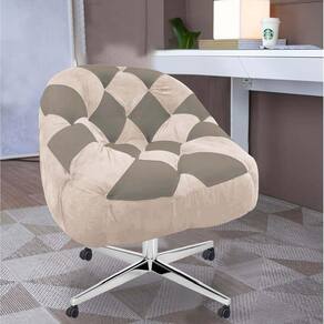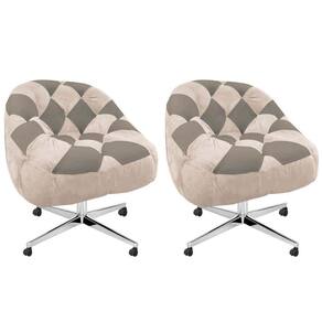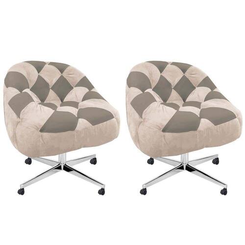 Kit 02 Poltrona Paloma Escritório Sala Giratória Metal Rodízio Suede Bege Rosado E Suede Cappuccino - Malessa Decor