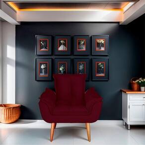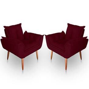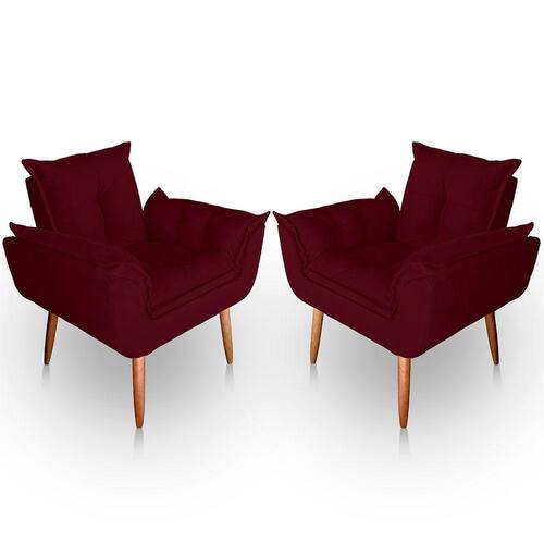 Kit 02 Poltrona para Sala e Quarto Decorativa Opala Suede Bordo - Bordô
