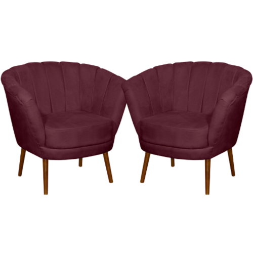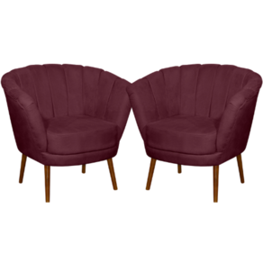 Kit 02 Poltrona Pétala Flor Decorativa Suede Bordô