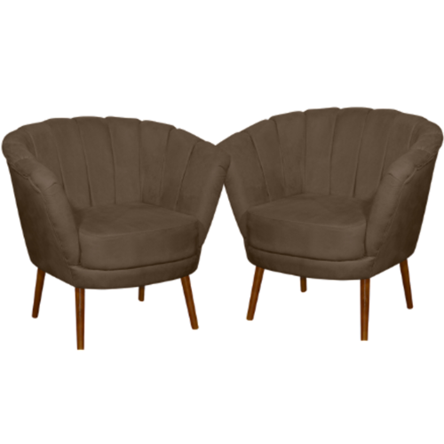 Kit 02 Poltrona Pétala Flor Decorativa Suede Marrom