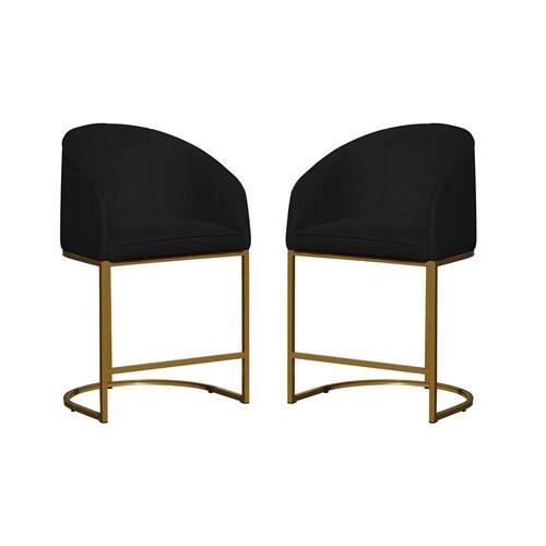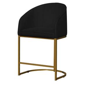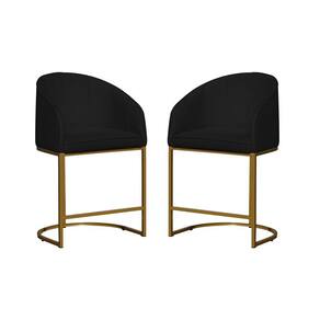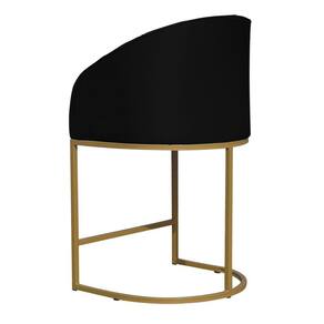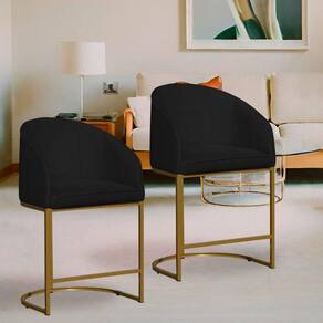 Kit 02 Poltronas Banqueta Mia Decorativa Tecido Suede Base Metal Dourada - Estopar - Preto