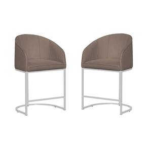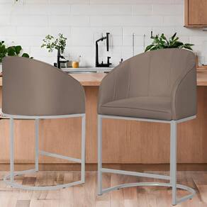Kit 02 Poltronas Banqueta Mia Estofada Tecido Em Suede Base Metal Branco - Estopar - Marrom Chocolate