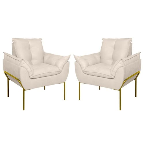 -Você receberá 2 volumes, ou seja, um Kit 02 Poltronas Base Metal Dourado Sala, Quarto Escritório