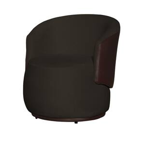 Detalhe no composê unindo o tecido suede ao tecido corino marrom;
