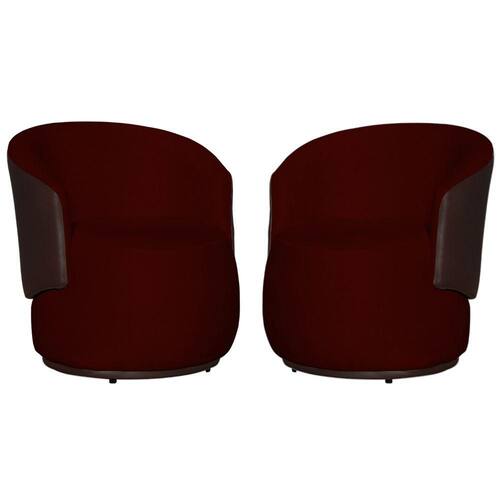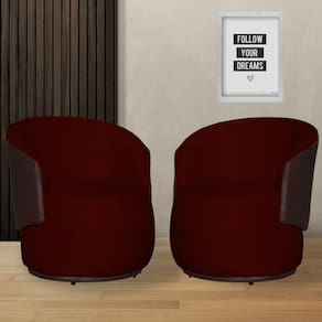 Kit 02 Poltronas Beatriz Confortáveis Tecido Suede Com Composê em Corino Marrom - Bordô