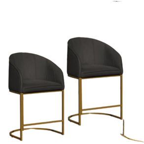 Kit 02 Poltronas Cadeira Banqueta Mia Base Dourada Veludo Grafite - Montanaris Decor
