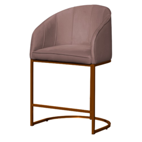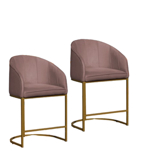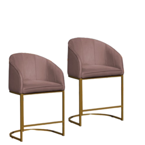 Kit 02 Poltronas Cadeira Banqueta Mia Base Dourada Veludo Rosê - Montanaris Decor