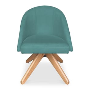 Kit 02 Poltronas Cadeira Giratória Bela Suede Base De Madeira - Pallazio Azul Turquesa
