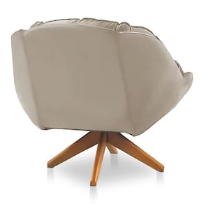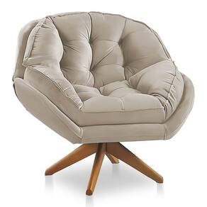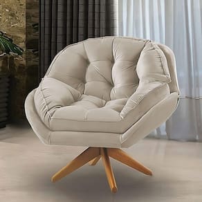 A versatilidade dessa poltrona é destacada pela base giratória, proporcionando mobilidade e praticidade ao ambiente. Seus detalhes cuidadosamente pensados, como costuras decorativas e a harmonia entre o veludo e a madeira, conferem um visual contemporâneo e acolhedor.