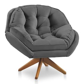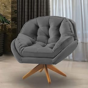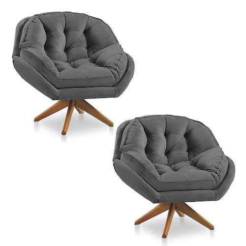 Kit 02 Poltronas Chicago Giratória Veludo Grafite Base de Madeira - Pallazio