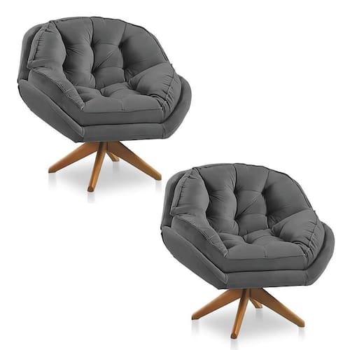 Kit 02 Poltronas Chicago Giratória Veludo Grafite Base De Madeira - Pallazio