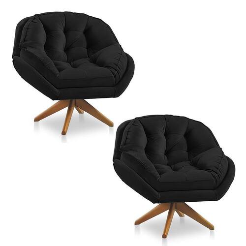Kit 02 Poltronas Chicago Giratória Veludo Preto Base de Madeira - Pallazio