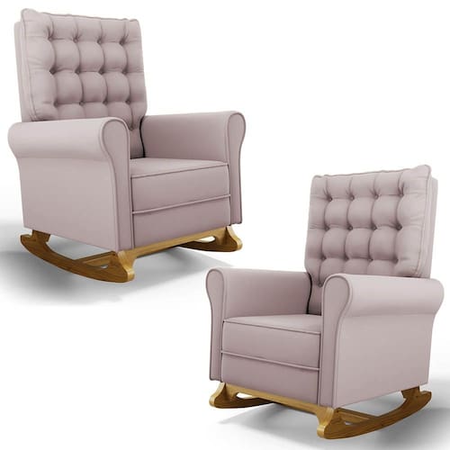 Se está procurando um Kit com conforto, qualidade e sofisticação. Confira o Kit 02 Poltronas de Amamentação e Descanso Base Madeira Balanço Brenda G05 Veludo Rosê, da Mpozenato!