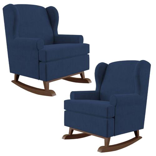 Características: Estrutura em madeira de pinus e eucalipto de reflorestamento, com imunização contra mofo, cupim e microrganismos; Revestimento em Suede Azul Marinho de alta qualidade; Encosto fixo com percintas elásticas, espuma D-23 e tratamento antimofo; Assento com espuma D-20, tratamento antimofo e almofada solta; Sustentação com percintas elásticas de alta resistência; Base com pés em formato de canoa e balanço suave; Peso suportado: Até 100 kg.
