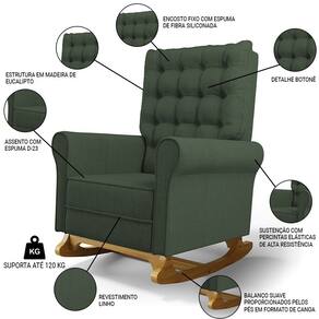Se está procurando um Kit com conforto, qualidade e sofisticação. Confira o Kit 02 Poltronas de Amamentação e Descanso Base Madeira Balanço Brenda G05 Linho Verde, da Mpozenato!