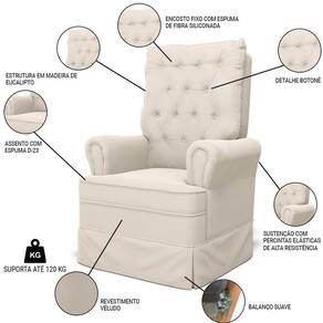 O Kit 02 Poltronas de Amamentação e Descanso Com Balanço Laís G05 Veludo Creme, da Mpozenato, possui várias características que vão tornar esse momento mais confortável e aconchegante!
