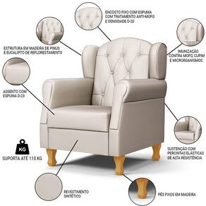 Outras Medidas: Largura Interna do Assento: 46 cm. Altura do Chão até o Assento: 42 cm. Altura do Encosto: 62 cm. Profundidade Interna do Assento: 50 cm. Altura do Braço: 19 cm. Altura dos Pés: 15 cm.