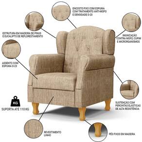 Conteúdo da Embalagem: 2 Poltronas, 8 Pés de Madeira.