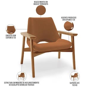 Altura: 162 cm | Color: Laranja | ColorFamily: Laranja | ColorSimple: Laranja | ColorSupplier: Terracota | Cor: Terracota | Cor dos pés: -1 | Densidade da espuma do assento: D-28 | Desenho do tecido: Liso | Estilo: Moderno | Fabricante: Lyam Decor | Formato do sofá: Linear | Largura: 158 cm | Linha: Sala de Estar, Living | Material: Estrutura em madeira de reflorestamento de eucalipto vermelho tratado | Material de enchimento do encosto: Espuma D-28 | Material do estofamento: Bouclê | MaterialFamily: Tecido, Madeira | Mecanismo de abertura do produto: -1 | Model: Becker | Orientação do Sofá: -1 | OriginCountry: | OriginState: PR | Peso: 20 kg | Peso máximo suportado: 150 Kg | ProductContents: 02 Poltronas | ProductHeight: 158 cm | ProductInstructions: Produto para uso em ambiente interno, nao devendo ficar exposto ao sol, calor e umidade excessivos. | ProductLength: 76 cm | ProductWarranty: 90 dias após o do produto | ProductWeight: 20 kg | ProductWidth: 162 cm | Profundidade: 76 cm | Quantidade de Caixas de embalagem: 1 | Requer montagem: Não | SizeDescription: Altura: 162 cm x Largura: 158 cm x Profundidade: 86 cm | SupplierSimpleName: Kit 02 Poltronas Decorativa Para Sala de Estar Living Base Madeira Becker L02 Bouclê Terracota - Lya | Tipo de produto: Poltrona | Unidades por kit: 2