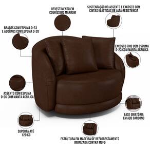 Indicado para uso residencial, sua limpeza deve ser feita com pano umedecido em água limpa, sem esfregar, não utilizar produtos abrasivos, desengordurantes, álcool ou solvente. Nunca sentar nos braços ou encosto do produto.