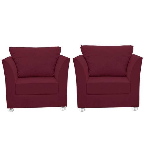 Kit 02 Poltronas Decorativa para Sala e Quarto Lisboa Suede Bordô