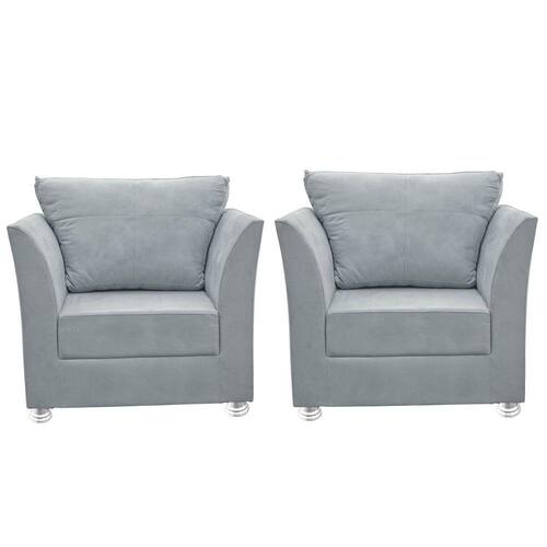 Kit 02 Poltronas Decorativa para Sala e Quarto Lisboa Suede Cinza Claro