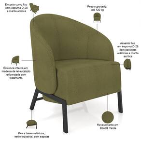 Cor: Verde | ProductLength: 72 cm | Altura: 82 cm | ProductWidth: 63 cm | Model: Sierra | OriginCountry: | Largura: 63 cm | ProductHeight: 82 cm | ProductInstructions: Produto para uso em ambiente interno, nao devendo ficar exposto ao sol, calor e umidade excessivos. | É poltrona: Sim | ProductWeight: 16 kg | Fabricante: Lyam Decor | Color: Verde | ColorFamily: Verde | ColorSimple: Verde | ColorSupplier: Verde | Estilo: Moderno | Peso: 16 kg | Material: Estrutura em Madeira de eucalipto, Revestimento em Bouclê e espuma | MaterialFamily: Madeira de eucalipto, Bouclê e espuma | OriginState: PR | Peso máximo suportado: 120 kg | Desenho do tecido: Liso | ProductContents: 2 Poltronas | SizeDescription: Altura: 82cm x Largura: 63cm x Profundidade: 72cm | Modelo: Sierra | SupplierSimpleName: Kit 02 Poltronas Decorativa Para Sala Living Pés Industrial Sierra K01 Bouclê Verde - Lyam Decor | Profundidade: 72 cm | ProductWarranty: 90 dias após o do produto