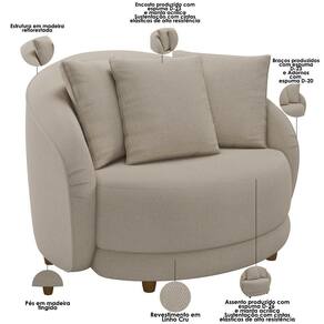 Indicado para residencial, sua limpeza deve ser feita com pano umedecido em água limpa, sem esfregar, não utilizar produtos abrasivos, desengordurantes, álcool ou solvente. Nunca sentar nos braços ou encosto do produto.