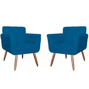 Kit 02 Poltronas Decorativa Sala Recepção Em Tressê Isabella Suede Azul Royal - LM DECOR