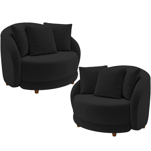 Unidades por kit: 2 | ColorSimple: Preto | Formato do sofá: NA | Linha: Sala de Estar | ProductHeight: 79 cm | Estilo: Moderno | Peso máximo suportado: 120 kg | ColorFamily: Preto | Cor: Preto | ProductWeight: 56 kg | Material do estofamento: Veludo | Tipo de produto: Poltrona | Cor dos pés: NA | Fabricante: Lyam Decor | Altura: 79 cm | Material: Madeira, Cintas Plásticas, Espumas e Veludo. | Orientação do Sofá: na | ProductContents: 02 Poltronas | ColorSupplier: Preto | Material de enchimento do encosto: Encosto fixo com espuma D-23 com manta acrílica. | Desenho do tecido: Liso | MaterialFamily: Madeira, Espuma, Veludo. | Color: Preto | Peso: 56 kg | Profundidade: 74 cm | OriginCountry: | ProductInstructions: Produto para uso em ambiente interno, nao devendo ficar exposto ao sol, calor e umidade excessivos. | Densidade da espuma do assento: Assento com espuma D-26 com manta acrílica. | Mecanismo de abertura do produto: na | ProductLength: 74 cm | SizeDescription: Altura: 79 cm x Largura: 110 cm x Profundidade: 74 cm | Requer montagem: Não | Largura: 110 cm | Model: Witta | OriginState: PR | ProductWarranty: 90 dias após o do produto | SupplierSimpleName: Kit 02 Poltronas Decorativas Para Sala de Estar Base Fixa Pés Madeira Witta M03 Veludo Preto - Lyam | ProductWidth: 110 cm