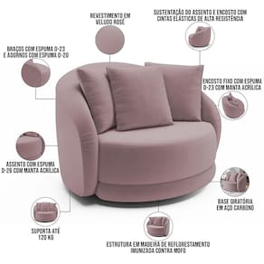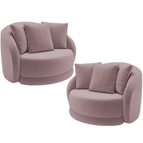 Tipo de produto: Poltrona | Cor dos pés: NA | Model: Witta | Altura: 79 cm | Unidades por kit: 2 | Formato do sofá: NA | Mecanismo de abertura do produto: na | OriginState: PR | ProductContents: 02 Poltronas | Material do estofamento: Veludo | Peso: 56 kg | Estilo: Moderno | Requer montagem: Não | SupplierSimpleName: Kit 02 Poltronas Decorativas Para Sala de Estar Base Giratória Witta M03 Veludo Rosê - Lyam Decor | ProductLength: 74 cm | Color: Rosa | Linha: Sala de Estar | Orientação do Sofá: na | Largura: 110 cm | ProductWeight: 56 kg | ColorFamily: Rosa | Profundidade: 74 cm | Material: Madeira, Cintas Plásticas, Espumas e Veludo. | Fabricante: Lyam Decor | Cor: Rosê | ColorSimple: Rosa | ColorSupplier: Rosê | Material de enchimento do encosto: Encosto fixo com espuma D-23 com manta acrílica. | Densidade da espuma do assento: Assento com espuma D-26 com manta acrílica. | OriginCountry: | ProductInstructions: Produto para uso em ambiente interno, nao devendo ficar exposto ao sol, calor e umidade excessivos. | ProductWidth: 110 cm | MaterialFamily: Madeira, Espuma, Veludo. | ProductWarranty: 90 dias após o do produto | SizeDescription: Altura: 79 cm x Largura: 110 cm x Profundidade: 74 cm | Peso máximo suportado: 120 kg | Desenho do tecido: Liso | ProductHeight: 79 cm